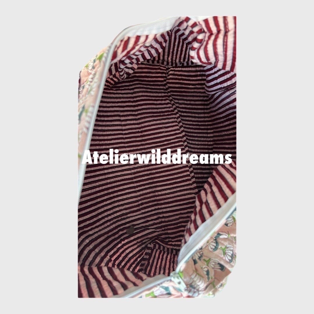Lekker veel ruimte binnenin en voorop een vakje voor knuffeltjes of fles. De tassen worden handgemaakt en kunnen dus iets afwijken van de foto.